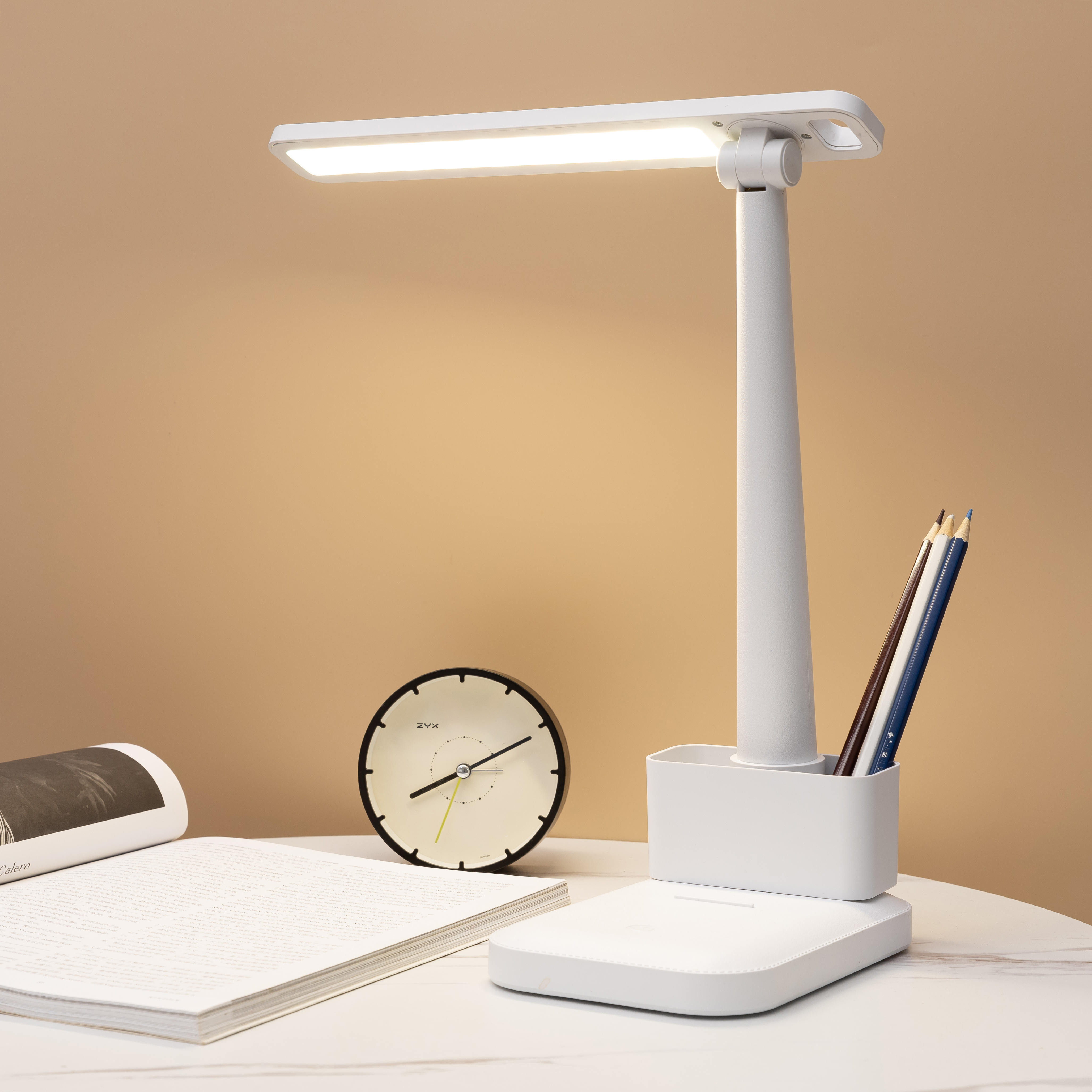 Настольная лампа Melissa станет вашим помощником во время чтения, учебы или работы (три цветовых температуры 3000K-4500K-6400K). Лампа с элегантный дизайном не только источник дополнительного освещения, но и органайзер, который поможет систематизировать работу в офисе или дома. Благодаря встроенному аккумулятору лампу можно использовать в автономном режиме (емкость батареи 1200 mAh). Вход: 5V-2A / 3.7V (потребляемая мощность 5W). Световой поток ≈ 250 lm. Индексом цветопередачи >80 CRA. В комплекте кабель USB и инструкция.