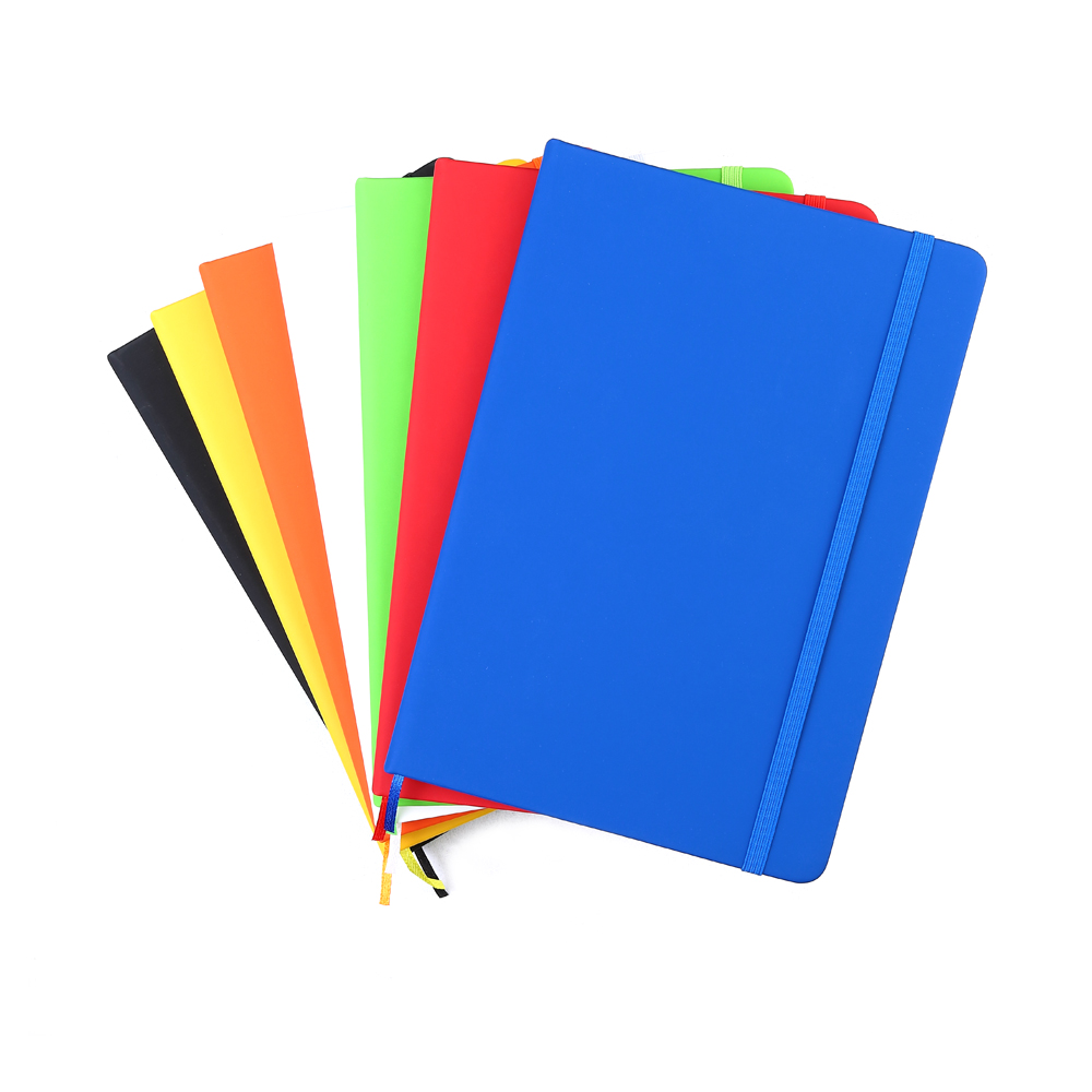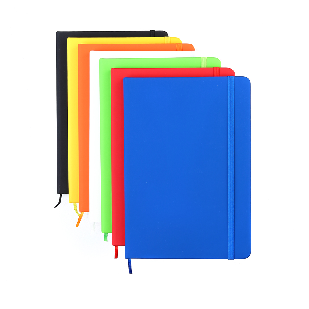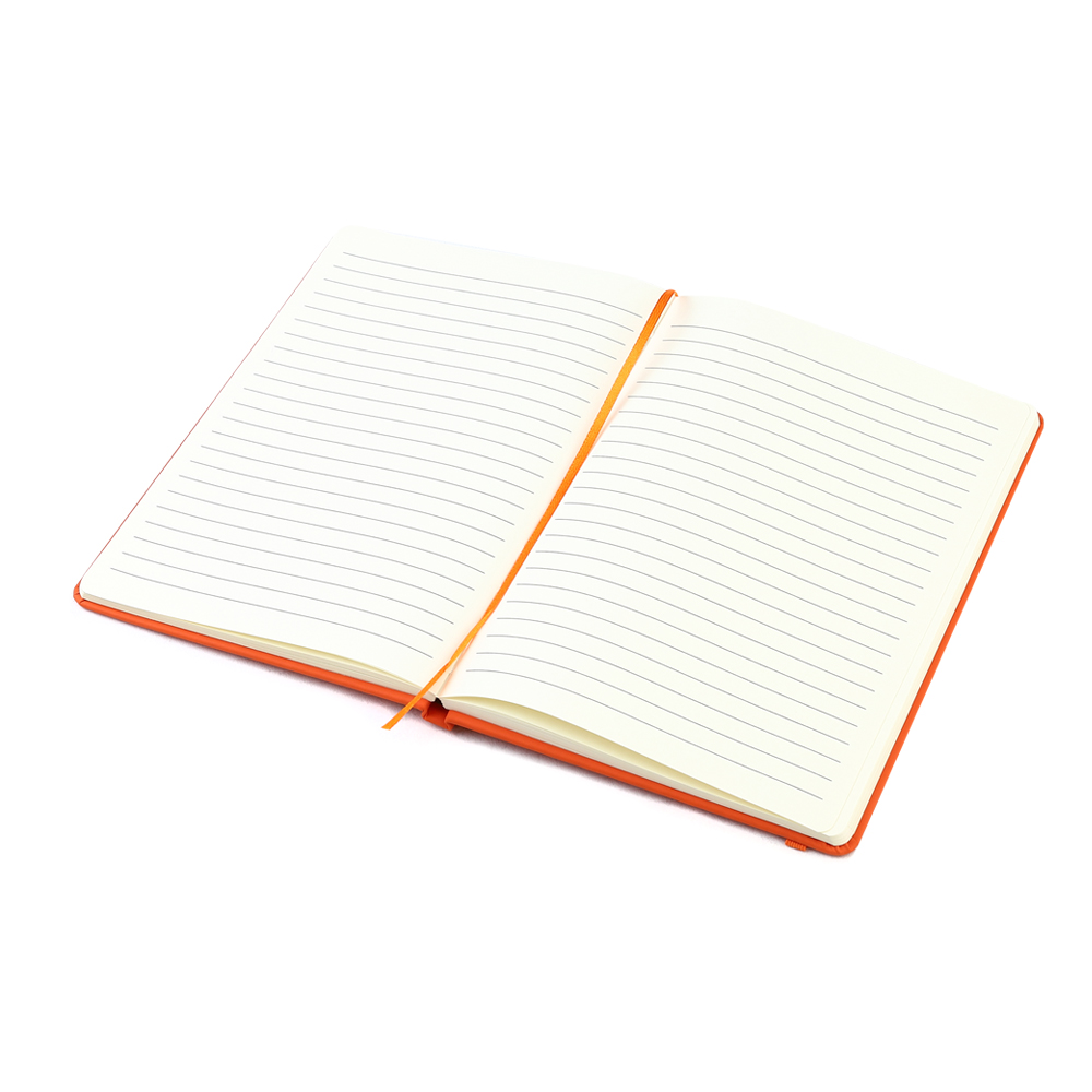 Блокнот формата А5 с твердым покрытием из PU-материала с имитацией рисунка кожи, с эластичной застежкой для закрытия и текстильной закладкой в цвет блокнота, 192 страницы, плотность 70г/м, страницы с черными линиями. Цвет по PANTONE® (максимально приближен): 166C.