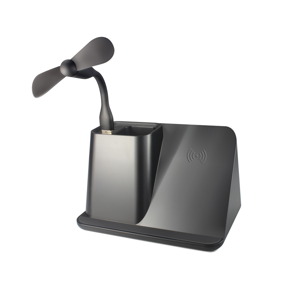 Органайзер Mercury – выгодный и эффективный способ продвижения. Со 100% гарантией, такой подарок найдет себе место на рабочем столе или в домашней обстановке. В душные дни, портавиный вентилятор добавит свежести, а со встроенной беспроводной зарядкой вы всегда будете на связи. Логотип вашего бренда будет эффектно напоминать о себе каждый день, благодаря подсветке, которая видна после гравировки. Беспроводная зарядка 5W. USB и USB Type С выходы (вход: 5V/2A, выход: 5V/2A 5W). Комлектация: капель Type-C, инструкция.