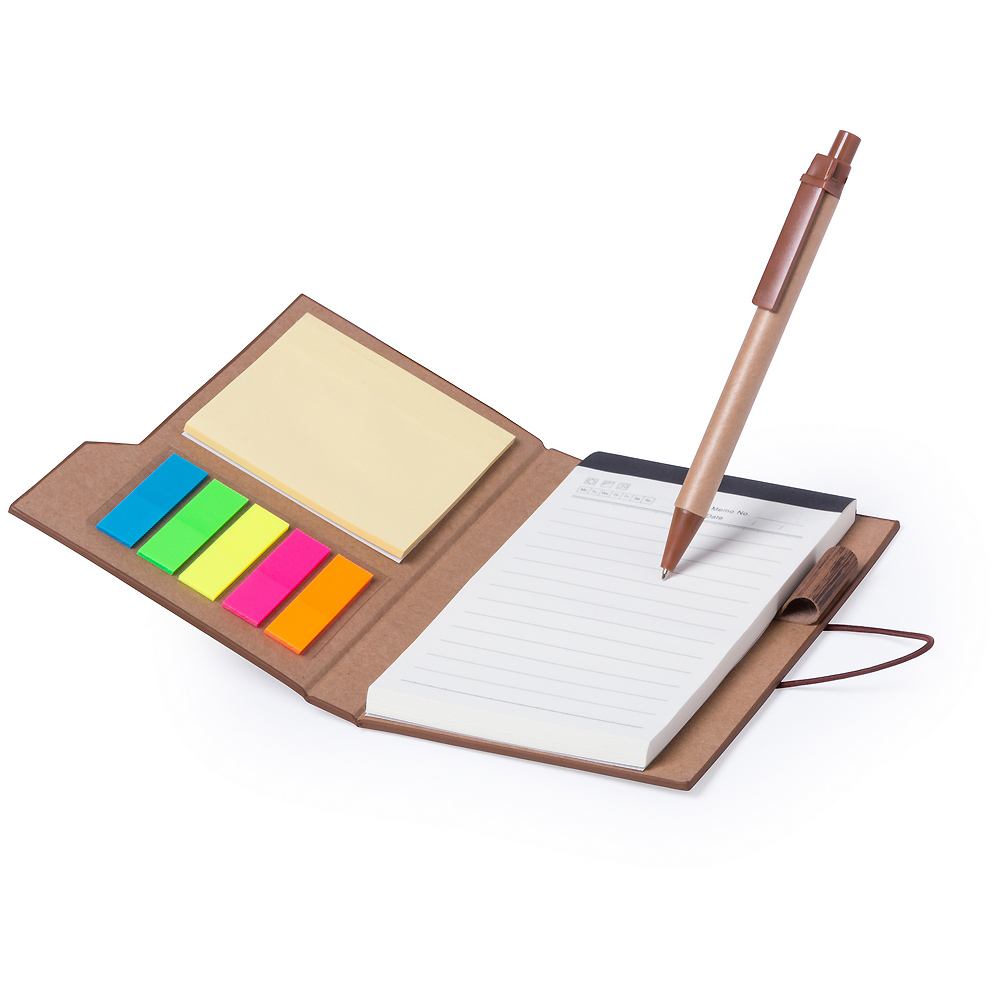 Набор для заметок: блокнот (примерно A6, 70 листов в линейку), блокнот 7,5 x 7,5 см (25 листов), мини-стикеры 1,2 x 4,5 см (125 шт.), шариковая ручка из переработанного картона