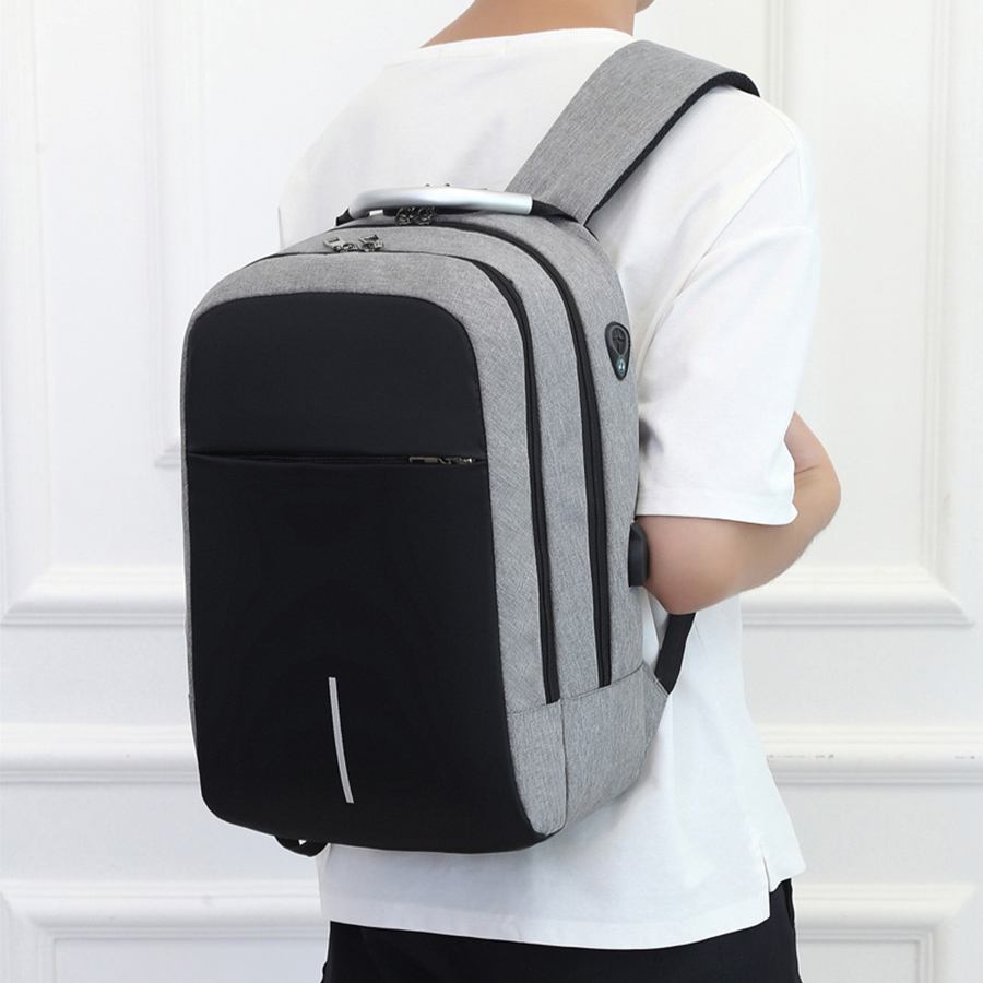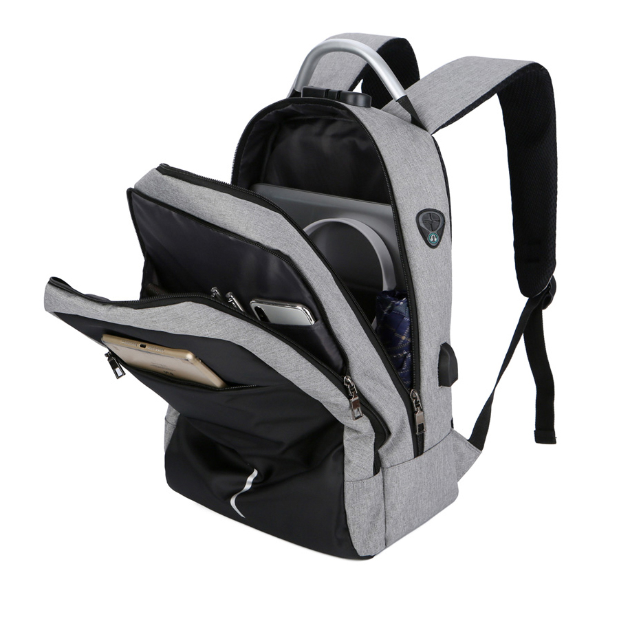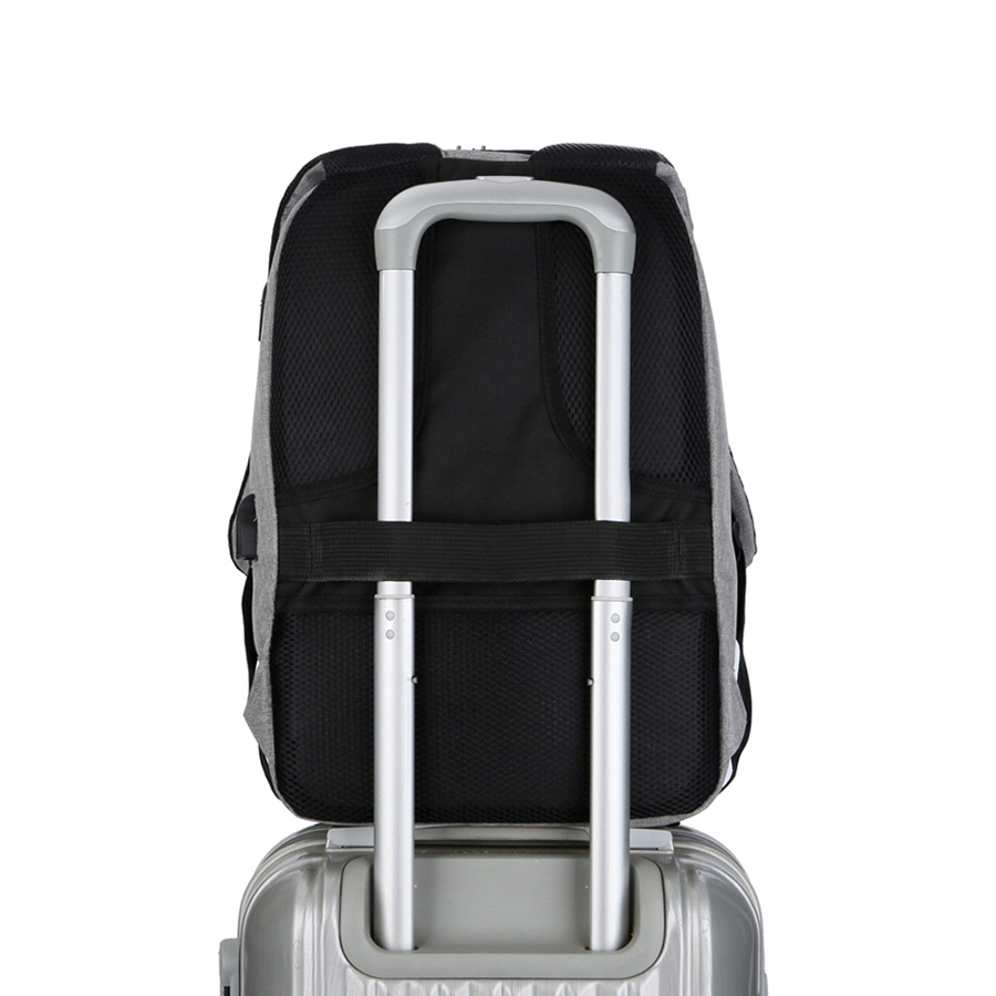 Безопасность на замке с рюкзаком Madma. Благодаря кодовому замку из комбинации 3х чисел, содержимое основного отделения под надежной защитой. По умолчаню код: 0-0-0. Передний карман для мелочей, 2 вместительных основных отделения. Фронтальное отделение имеет внутренний карман с сеточкой. Основное отделение имеет карман для ноутбука, 2 кармана для мелочей и 2 кармана для письменных принадлежностей. Снаружи есть USB-разъем с проводом внутри для подключения внешнего аккумулятора, а также отверстие для наушников. Ручка, спинка и лямки рюкзака с системой вентиляции. Со стороны спины есть лямка для размещения рюкзака на ручке чемодана.
