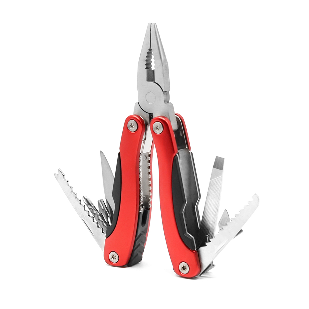 - Функции: Плоскогубцы, Кусачки, Консервный нож, Открывалка для бутылок, Средняя и маленькая плоские отвертки, Крестовая отвертка, Гладкое лезвие, Зубчатое лезвие, Пила, Напильник