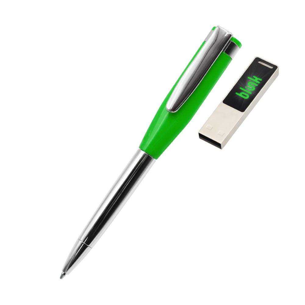 Ручка металлическая Memphys c флешкой 64Гб, зеленая