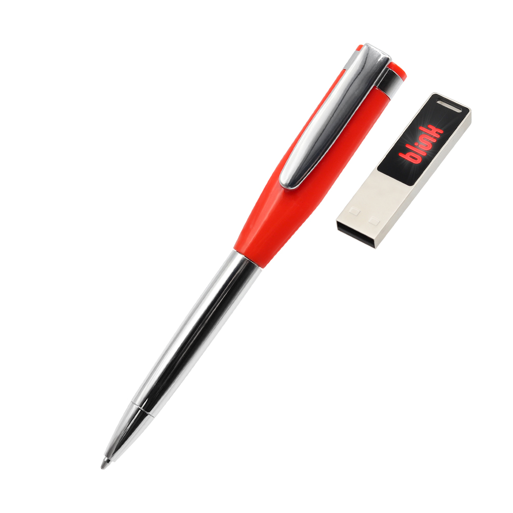Ручка металлическая Memphys c флешкой 64Гб, красная