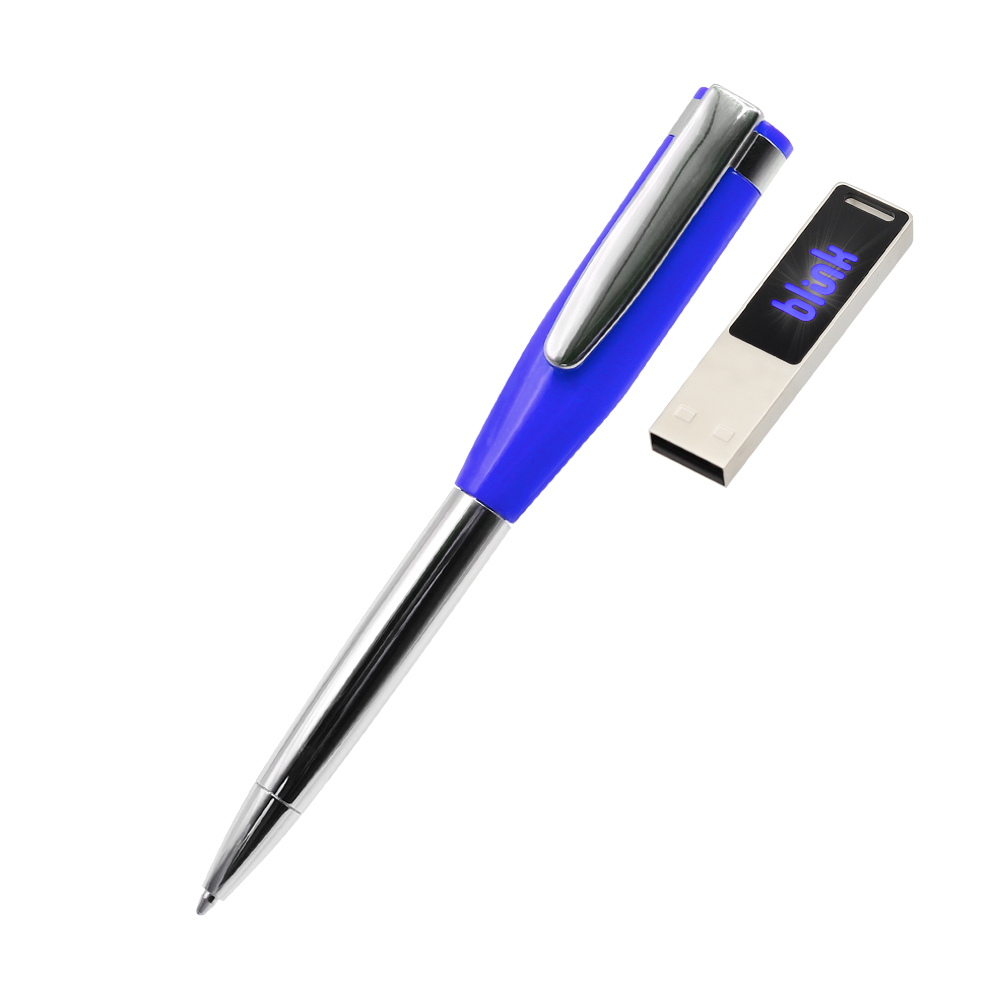Ручка металлическая Memphys c флешкой 64Гб, синяя